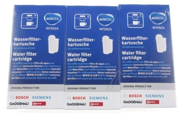 **17000706 WASSERFILTER 3ER PACK BRITA INTENZA FÜR KAFFEEVOLLAUTOMATEN** – hochwertiges Filter als Ersatzteil für Reparaturen und Wartung, kompatibel mit Bosch. Dieses Modell ist so konzipiert, dass Passform und Funktion den Originalspezifikationen entsprechen. Profitieren Sie von zuverlässiger Leistung, sauberer Verarbeitung und einer einfachen Montage.