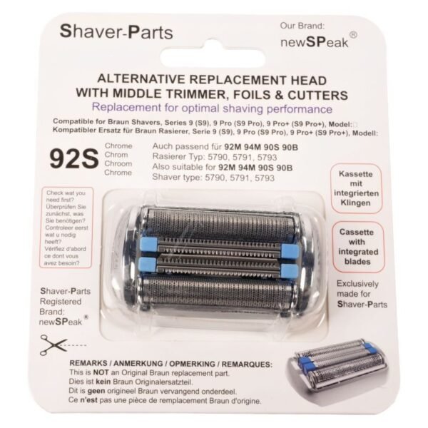 **SCHERKOPFKASSETTE ALTERNATIV FÜR BRAUN 92S 92M 94M 90S 90B SERIES 9** – hochwertiges Ersatzteil als Ersatzteil für Reparaturen und Wartung, kompatibel mit Braun. Dieses Modell ist so konzipiert, dass Passform und Funktion den Originalspezifikationen entsprechen. Profitieren Sie von zuverlässiger Leistung, sauberer Verarbeitung und einer einfachen Montage.
